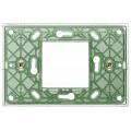 • Supporto: è agganciato alla scatola, permette di agganciare la placca ed ospita i frutti (come i pulsanti e le prese). Può essere a due, tre o più moduli, in base alle esigenze. Il numero dei moduli deve corispondere a quello delle placche e della scatola.