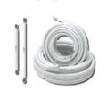 Tubo di rame conforme alla normativa europea EN 12735-1, cotto in rotoli, con pulizia interna, rivestito con guaina in polietilene espanso cellule chiuse, densità isolamento 45 kg/m, autoestinguente Classe 1, anticondensa, per gas freon, impianti split e pompe di calore. Idoneo per gas ecologici R407 e R410. Spessori isolamento: L. 10/91, antigraffio. Cond. termica: 0,0397 W.m-1.k-1. Coeff. dispersione vapore acqueo: oltre 5.000. Temperature di esercizio: - 80° C + 95° C.