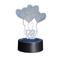 Lampada da tavolo LED 3D in plexiglass trasparente, pensata per valorizzare camere, soggiorni, studio e spazi commerciali con un effetto scenografico moderno. L’incisione a tema palloncini crea un’illusione ottica tridimensionale che rende la luce parte dell’arredo, ideale come punto luce d’atmosfera o come complemento decorativo. Illuminazione multicolore con effetti