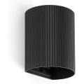 La superficie in metallo verniciato nero rende questa applique non solo resistente ma anche facile da integrare in qualsiasi contesto d'arredo, sia in salotto, corridoio, camera da letto che in spazi commerciali. Le linee verticali sull'involucro creano un elegante gioco di ombre e luci sulla parete, aumentando la percezione di profondità e modernità dell'ambiente.