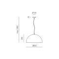 Il corpo ospita una sorgente con attacco E27 (max 60 W) e alimentazione 220 240 V AC 50 60 Hz. Grado di protezione IP20 e classe di isolamento I, adatta a installazioni interne in ambienti asciutti. Dimensioni indicative da disegno tecnico: diametro 50 cm, altezza corpo 25 cm, rosone diametro 10 cm; altezza massima installabile 185 cm. Note utili per la scelta