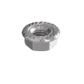 Formato esagonale, filettatura metrica M6, esecuzione con flangia zigrinata. Soluzione adatta a manutenzione, montaggi in serie e applicazioni generiche di viteria dove si ricerca praticità e tenuta del serraggio. .